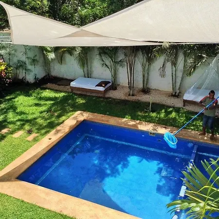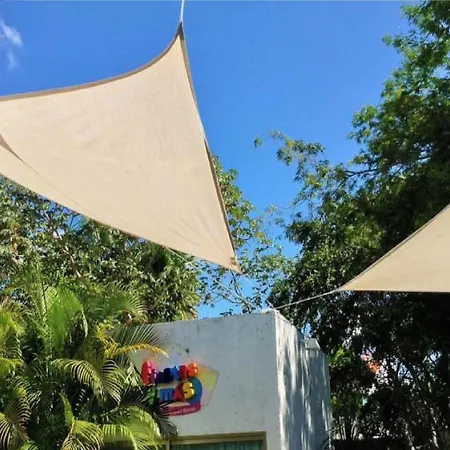 Cozinha comunitária é oferecida no site. Aeroporto Internacional de Cancun fica a 14 minutos de carro da pousada.